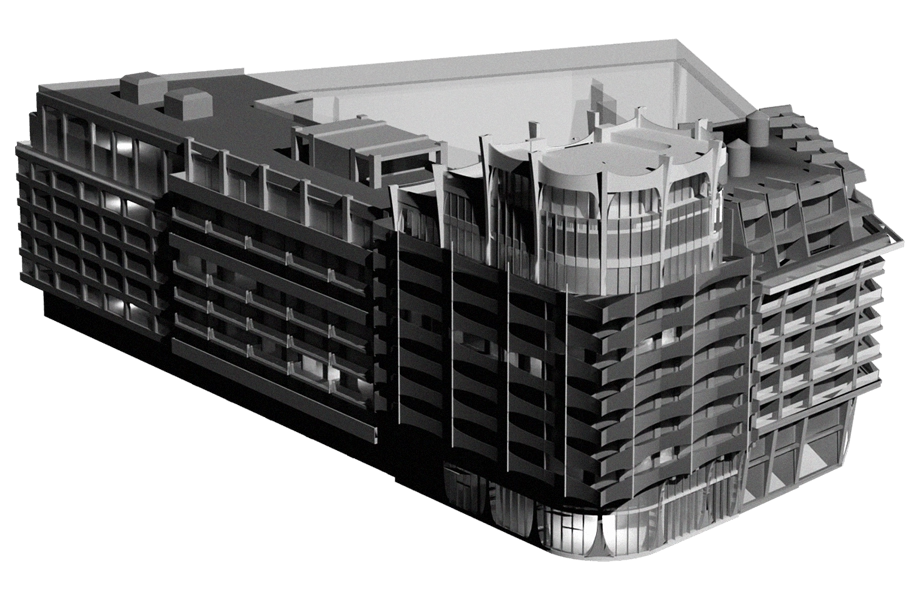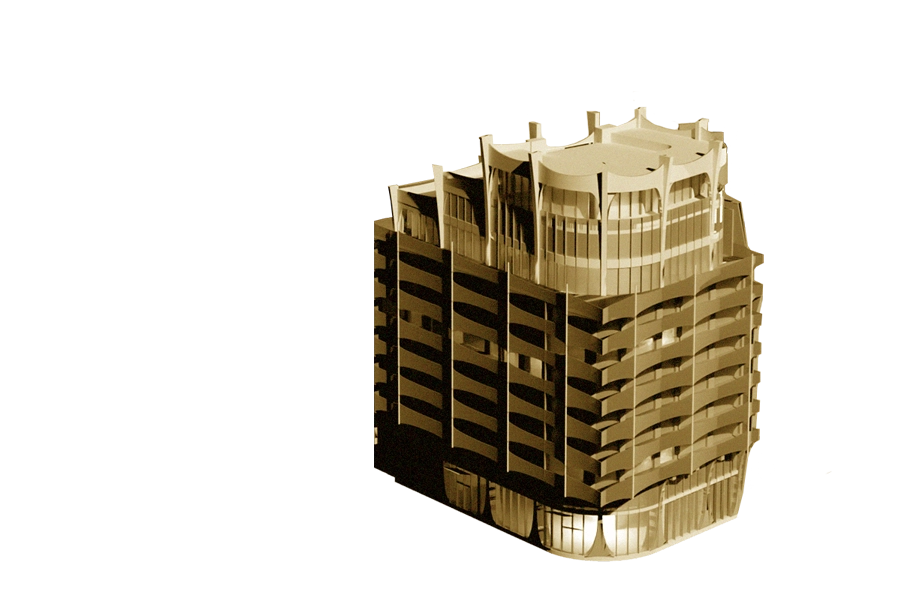 Nárožní dům, který Chmelař pracovně označuje jako budovu Dva, pracuje s dalšími prvky typickými pro New York. Jedním z nich je umělecký styl art deco, který je v architektuře amerického města výrazně zastoupen.