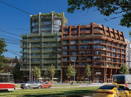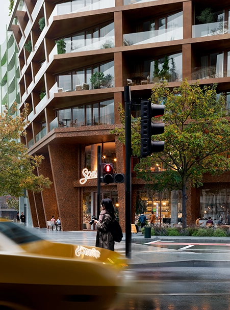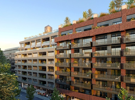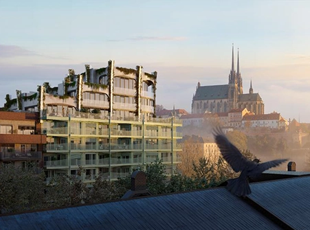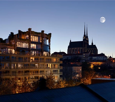 Budovy Jedna a Dva Nové Ameriky mají na rozdíl od zbývajících domů společný vstup. „Rozhodli jsme se ho udělat docela velkorysý, protože nároží je poměrně rušné. Jezdí tam tramvaje, auta a pohybuje se tam hodně lidí,“ říká Chmelař s tím, že první a druhé patro domu jsou ideální pro služby a obchody. Bydlet se bude od třetího patra výše. V těch nejvyšších poschodích budov Jedna a Dva budou dva mezonetové byty, každý se vstupem na střechu na straně od Petrova i k němu. Podle Chmelaře odsud bude jeden z nejhezčích výhledů v Brně.