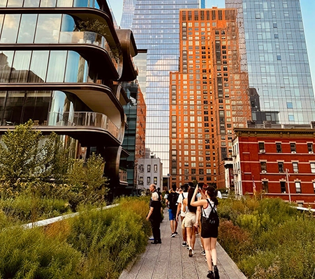 Dalším motivem je zeleň. Ta je rovněž neodmyslitelnou součástí newyorského panoramatu, ať jde o ikonický Central Park nebo o bývalou železniční trať, ze které se stala oblíbená pěší zóna a park High Line. „Podobně jako v Brně vedla i do centra New Yorku železnice zásobující tehdejší fabriky. A podobně jako tady se i v americké metropoli přestala používat, začala přirozeně zarůstat a vznikl skvělý nápad přetvořit ji ve vyvýšenou promenádu,“ vysvětluje Chmelař. Do pár let by svou promenádu právě po vzoru newyorské High Line mělo mít i Brno. Zrevitalizovaný železniční viadukt by měl spojit centrum města a nedávno proměněné nábřeží řeky Svratky. „Brno z toho může mít skvělé místo pro kulturně-společenské vyžití obyvatel,“ věří Chmelař.